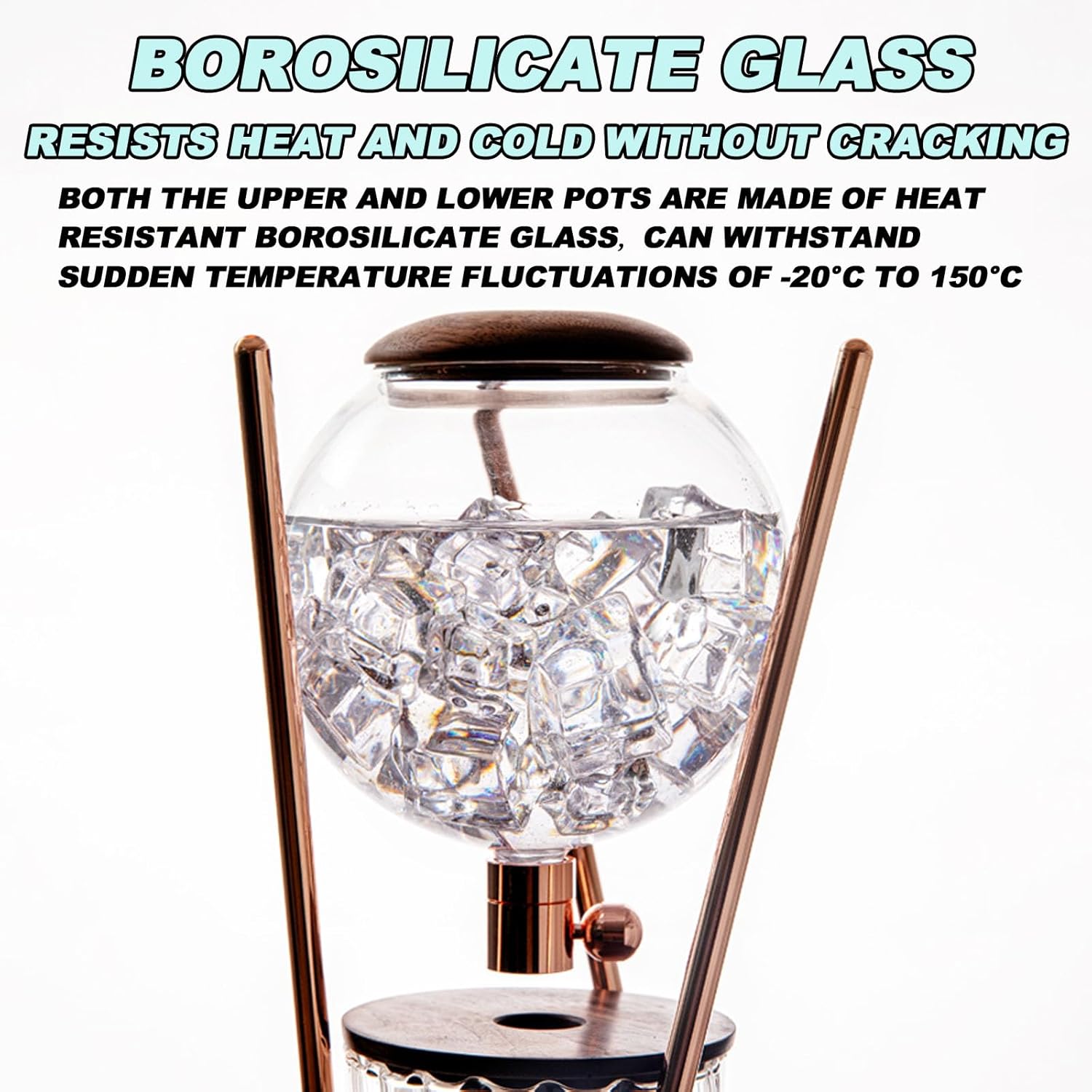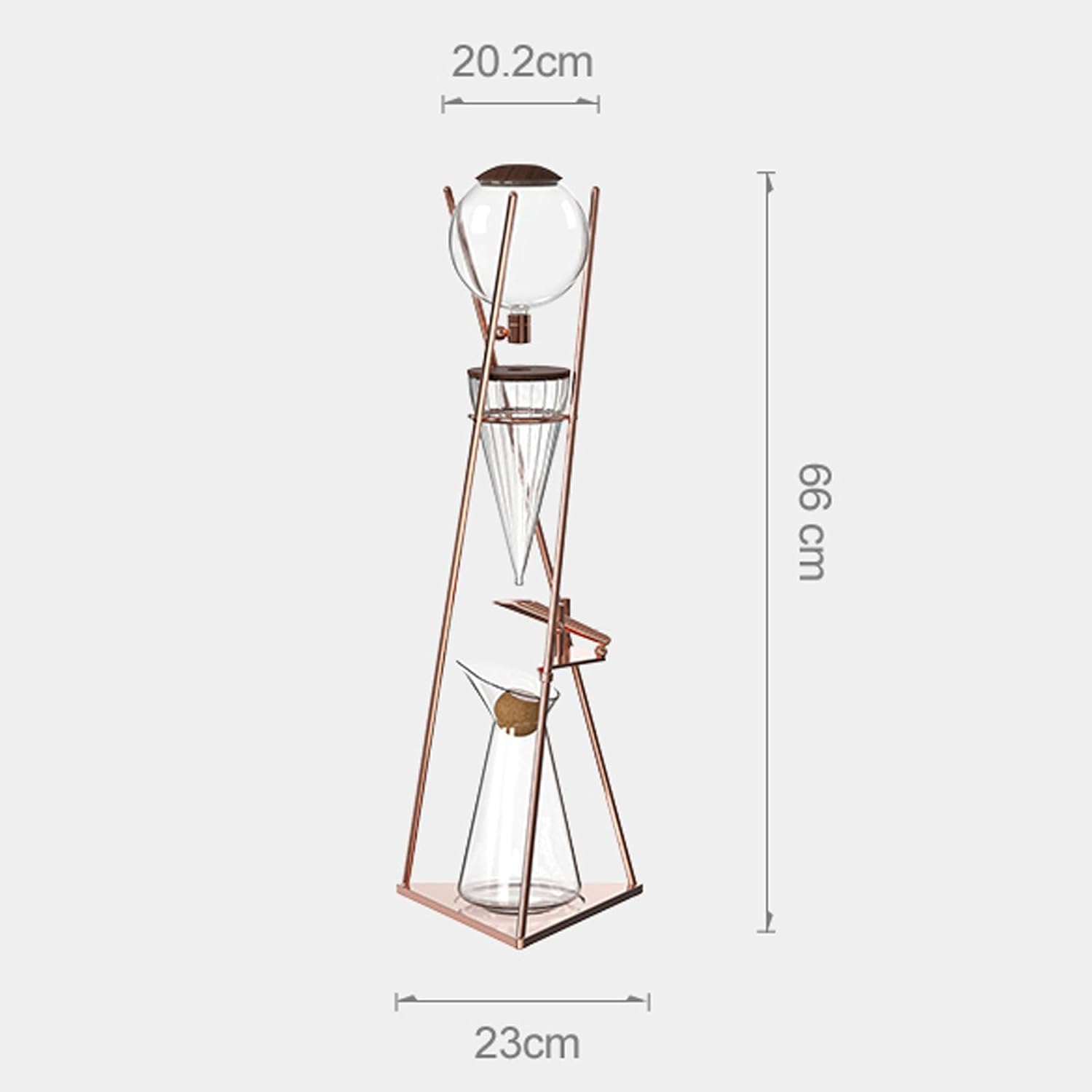 How to use: 1. Add medium ground coffee powder to the filter, the ratio of ice water to powder 2. Put the lower pot back, you need to align the water inlet with the faucet 3. Add ice cubes and ice water to the upper pot 4. Adjust the valve, and the dripping speed can be uniform 5. Put them together and fill the water tank with cold water 6. Put cold brew coffee in a sealed bottle. Specification: Name: Cold Brew Coffee Makers Material: High Borosilicate Glass, Stainless Steel Capacity: 800ML Size: 66 x 23cm / 26 x 9 inch Package List: 1pc x Cold Brew Coffee Makers